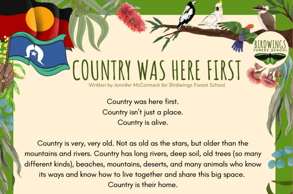 "Country Was Here First" is a gentle story for children aged five and under, offering an age-appropriate way to approach Australia Day / Survival Day through listening, relationship, and care for Country.